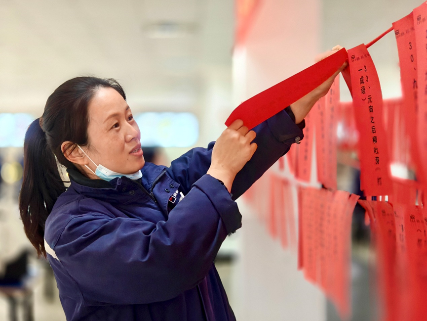燈謎區(qū)前,員工們或蹙眉沉思,或恍然大悟,歡聲笑語此起彼伏。猜中燈謎的員工們滿懷期待地?fù)Q取福圈,興致勃勃地投入到套圈、抽紅包游戲中,現(xiàn)場氣氛非常熱烈。
