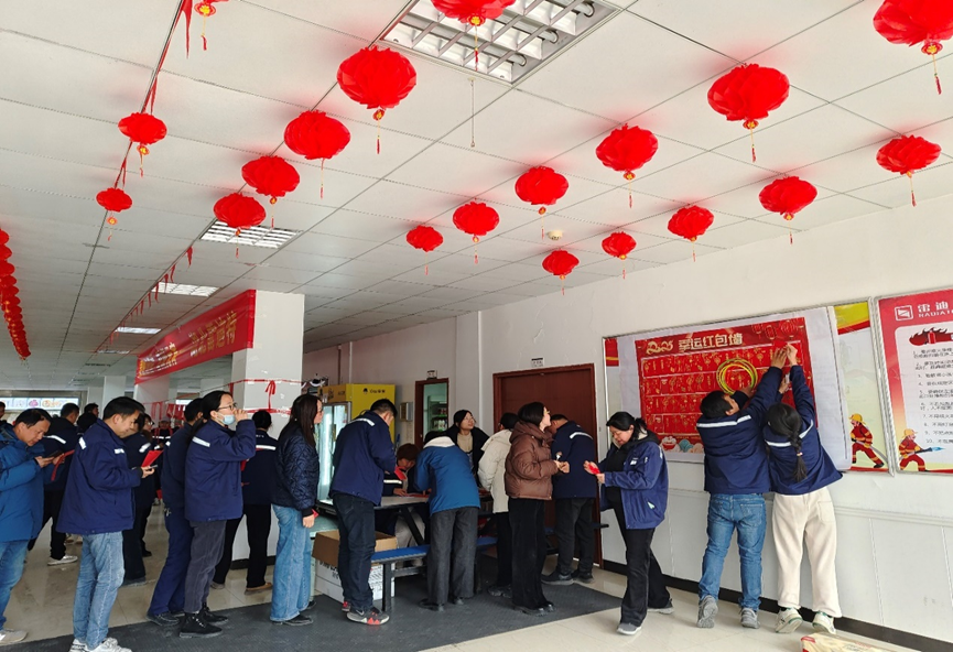 活動現(xiàn)場彩燈高掛,燈謎飄揚(yáng),一片喜慶祥和,洋溢著濃厚的節(jié)日氛圍。全體員工歡聚一堂,積極參與猜燈謎、套福圈、抽紅包等趣味橫生的活動。